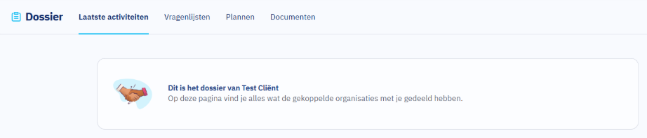 Het dossier opent automatisch op de pagina ‘Laatste activiteit’.