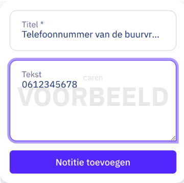 Let op: notities zijn zichtbaar voor alle mantelzorgers in het netwerk van de cliënt, maar niet voor de zorgorganisatie.