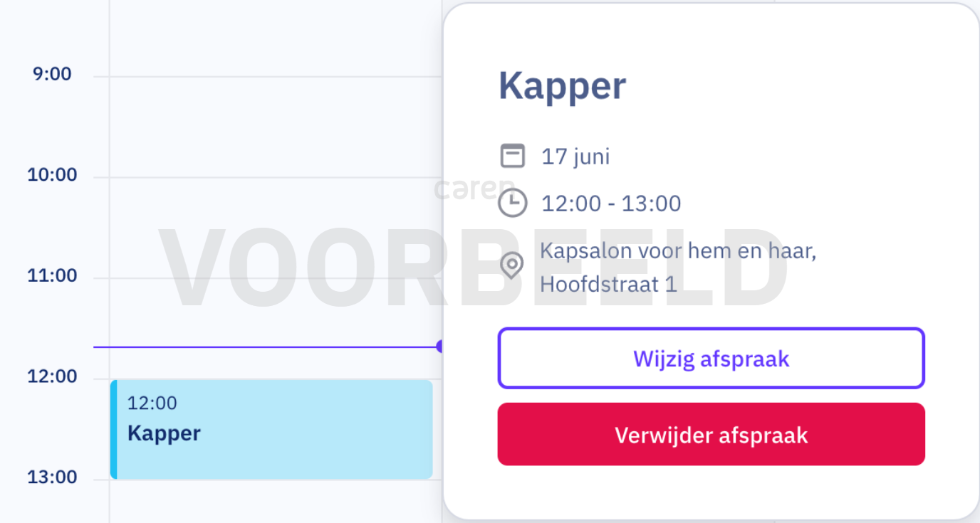 - Klik op de afspraak die je wilt wijzigen of verwijderen.