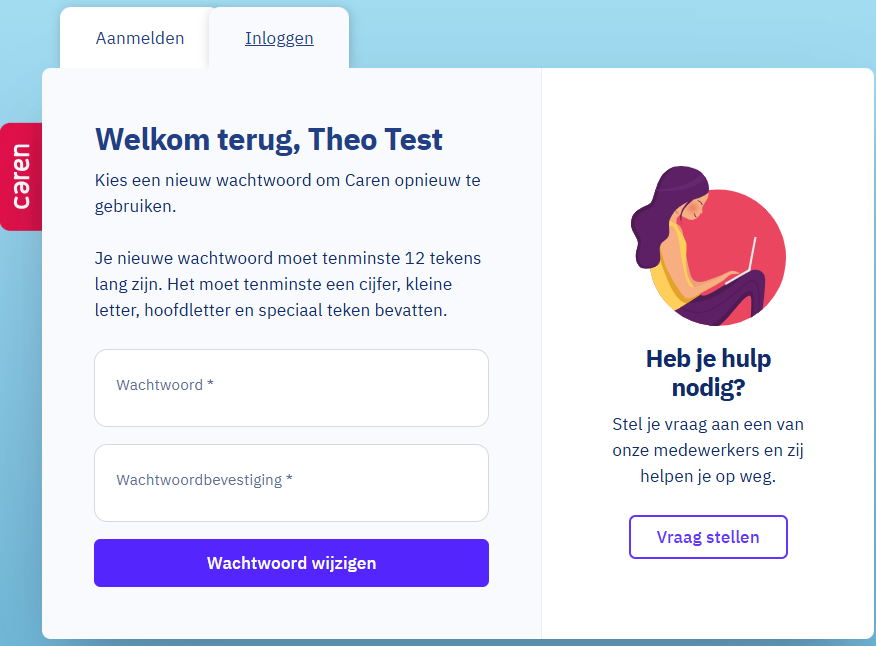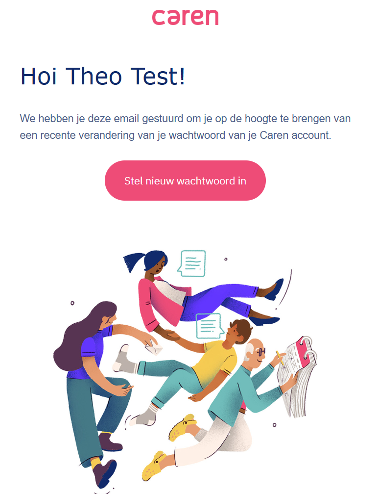 Je wachtwoord is nu gewijzigd.Log opnieuw in met je nieuwe wachtwoord via www.caren.nl.