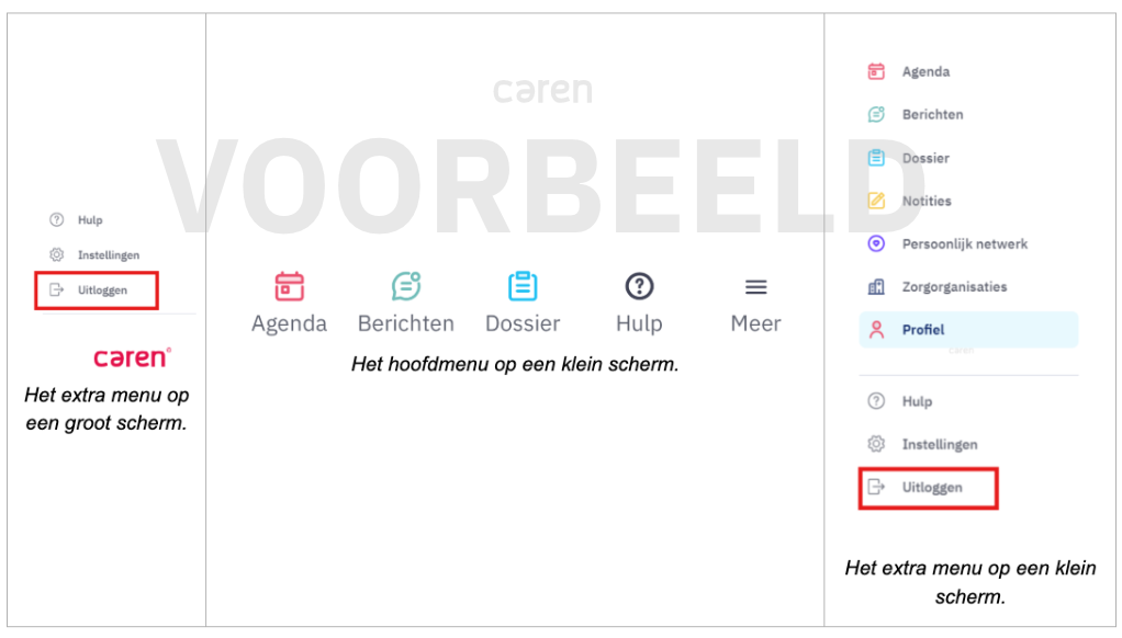 Ben je klaar met werken in Caren? Klik dan in het menu op Uitloggen om veilig af te sluiten.
