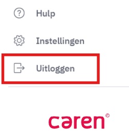 Wanneer je Caren op een computer gebruikt, zie je linksonder in het menu de knop ‘Uitloggen’.