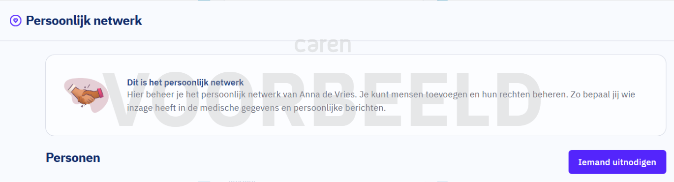 Gebruik je Caren op een mobiel apparaat? Tik dan rechtsonder op Meer en daarna op Persoonlijk netwerk. - Klik op Iemand uitnodigen.
