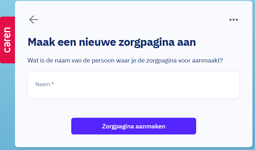 Voordat je een zorgpagina kunt maken, heb je een Caren-account nodig. Lees hier hoe je dat doet: Een nieuw account aanmaken voor Caren.