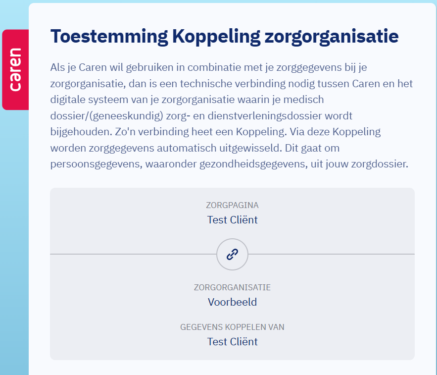- Caren vraagt om jouw toestemming om persoonsgegevens te verwerken en te delen.