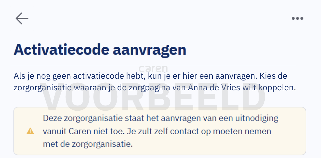 Let op: Sommige zorgorganisaties staan aanvragen via Caren niet toe. Neem dan contact op met de zorgorganisatie.