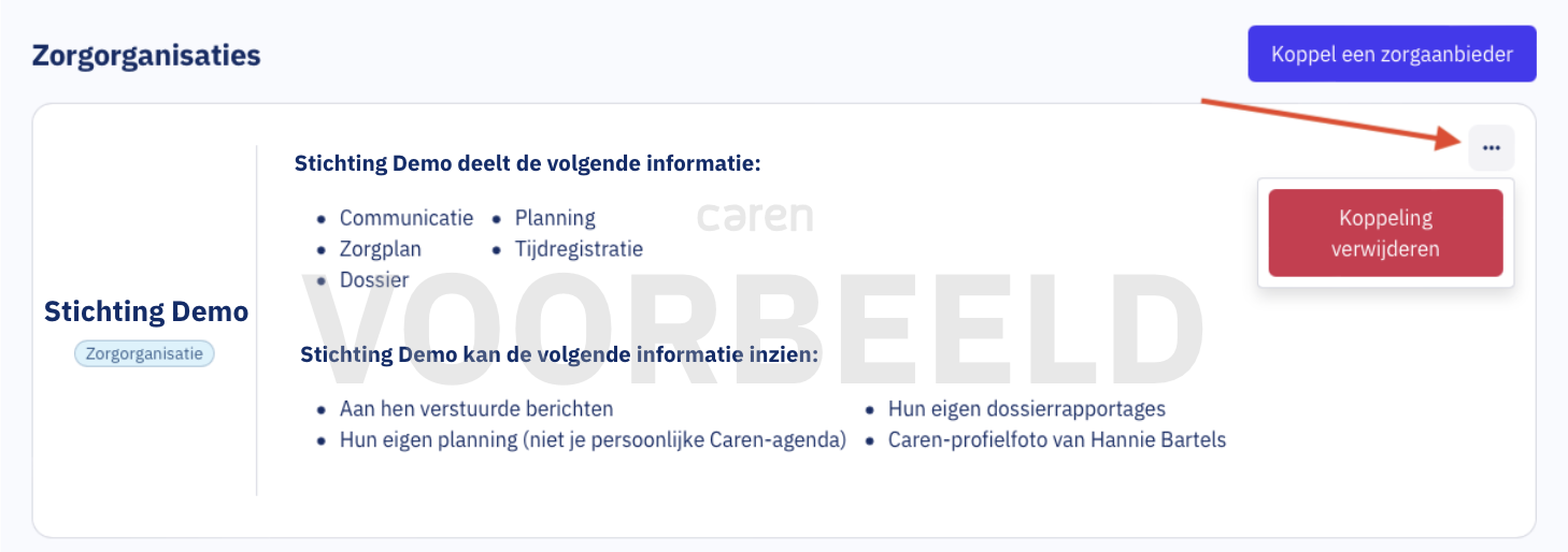 Wil je de koppeling met een zorgorganisatie verwijderen? Bijvoorbeeld omdat je per ongeluk verkeerd gekoppeld bent? Volg dan de onderstaande stappen.