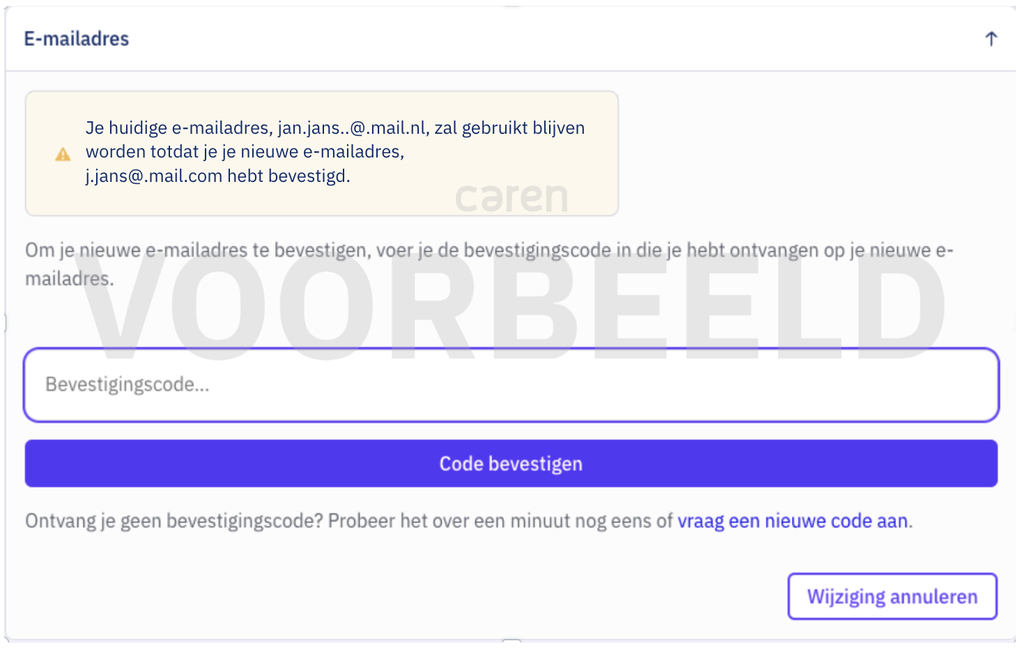 - Je krijgt een e-mail met een code op je nieuwe adres. Deze gebruik je om je e-mailadres te bevestigen.