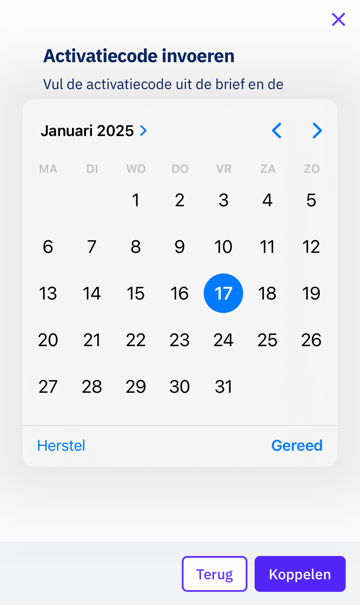 Als je een zorgorganisatie koppelt, vul je je geboortedatum in.